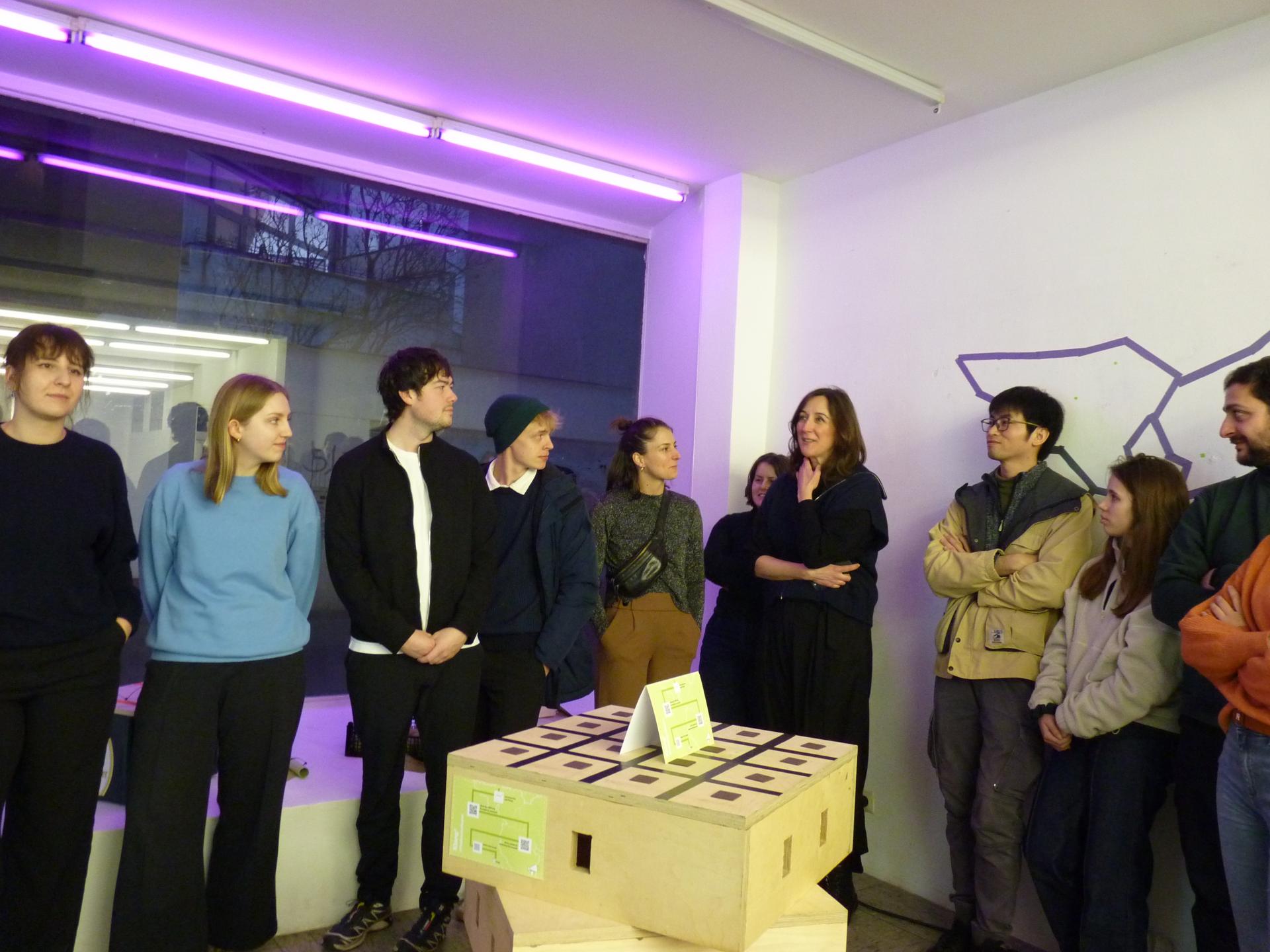 In der Abschlussphase vom 19. bis 21. Januar 2026 in der Architekturgalerie Kaiserslautern wurden die Ergebnisse kuratiert und öffentlich präsentiert. Kernstück der Präsentation war die UniGR-Toolbox: elf Prototypen, jeweils zugeordnet zu den analysierten Begegnungstypen, ergänzt durch detaillierte Anleitungen zu Entstehung, Analyse und Umsetzung. Besucher*innen konnten die Tools ausprobieren, das Klang-Memory klang² spielen oder die wandgroße Kartografie der Begegnungsorte erkunden.