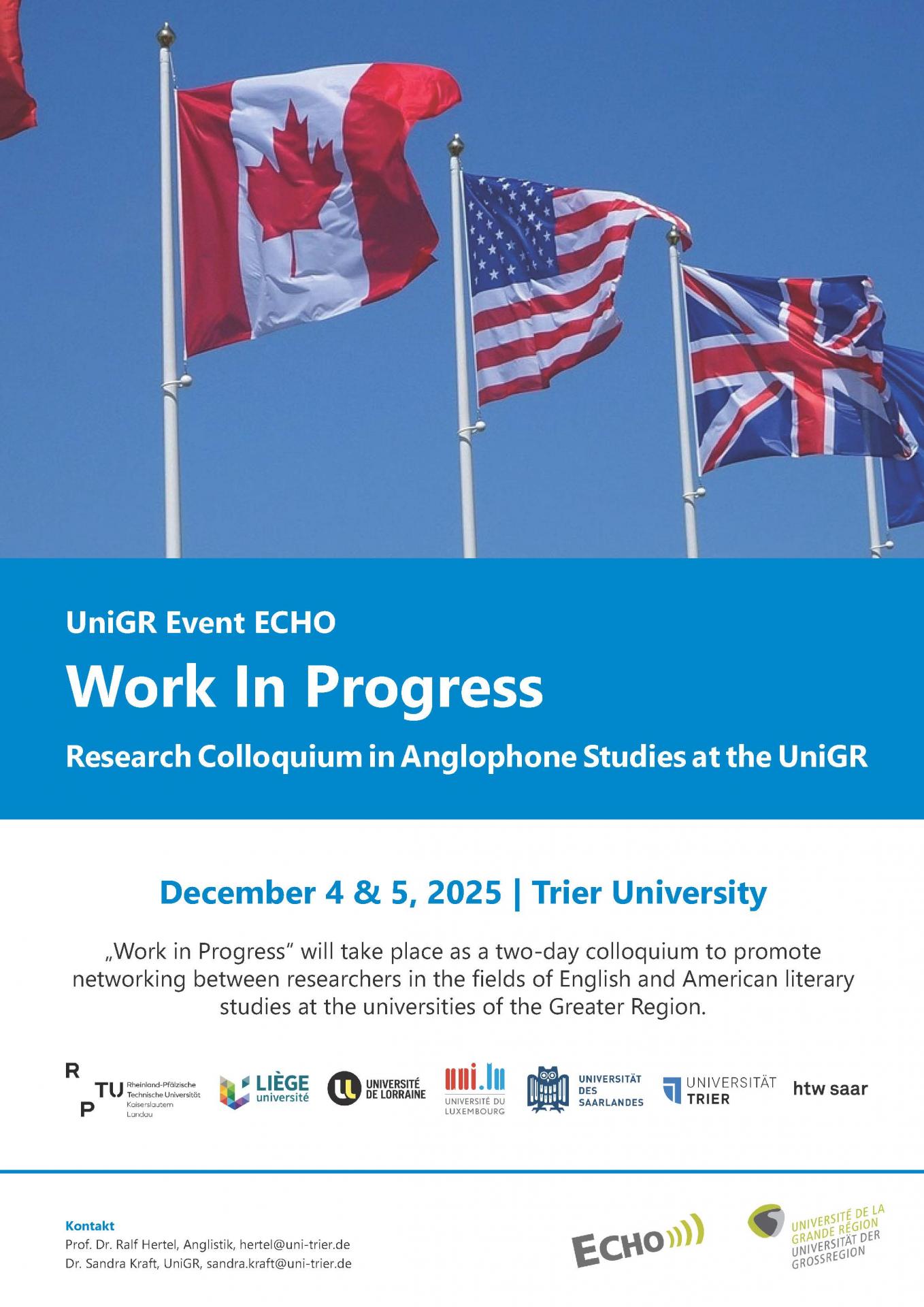 Les 4 et 5 décembre 2025, des spécialistes de littérature anglophone et américaine se réuniront à l’Université de Trèves pour un colloque de deux jours visant à croiser les approches développées au sein des départements d’études anglaises des universités partenaires de la Grande Région.